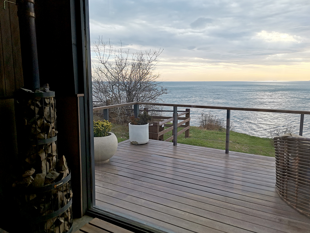 Отметили первый день весны в видовой бане над морем :) Дорого, но очень фотосессийно. Есть сауна, баня, комната отдыха с чаем и гвоздь программы - джакузи под открытым небом. В бане цельностеклянная стена - паришься и любуешься волнами. Красота, в общем.